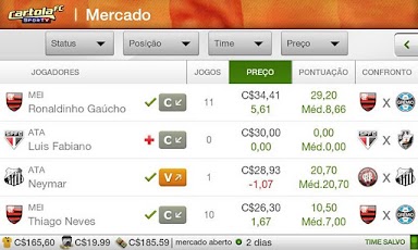- Comprar e vender jogadores com as C$ (cartoletas) - moeda virtual do game;