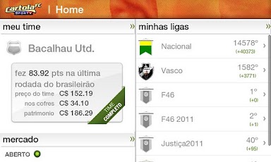 - Comprar e vender jogadores com as C$ (cartoletas) - moeda virtual do game;